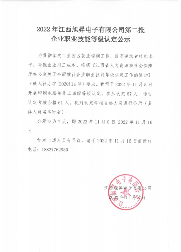 下一篇:2022年江西旭昇電子有限公司第一批企業(yè)職業(yè)技能等級(jí)認(rèn)定公示